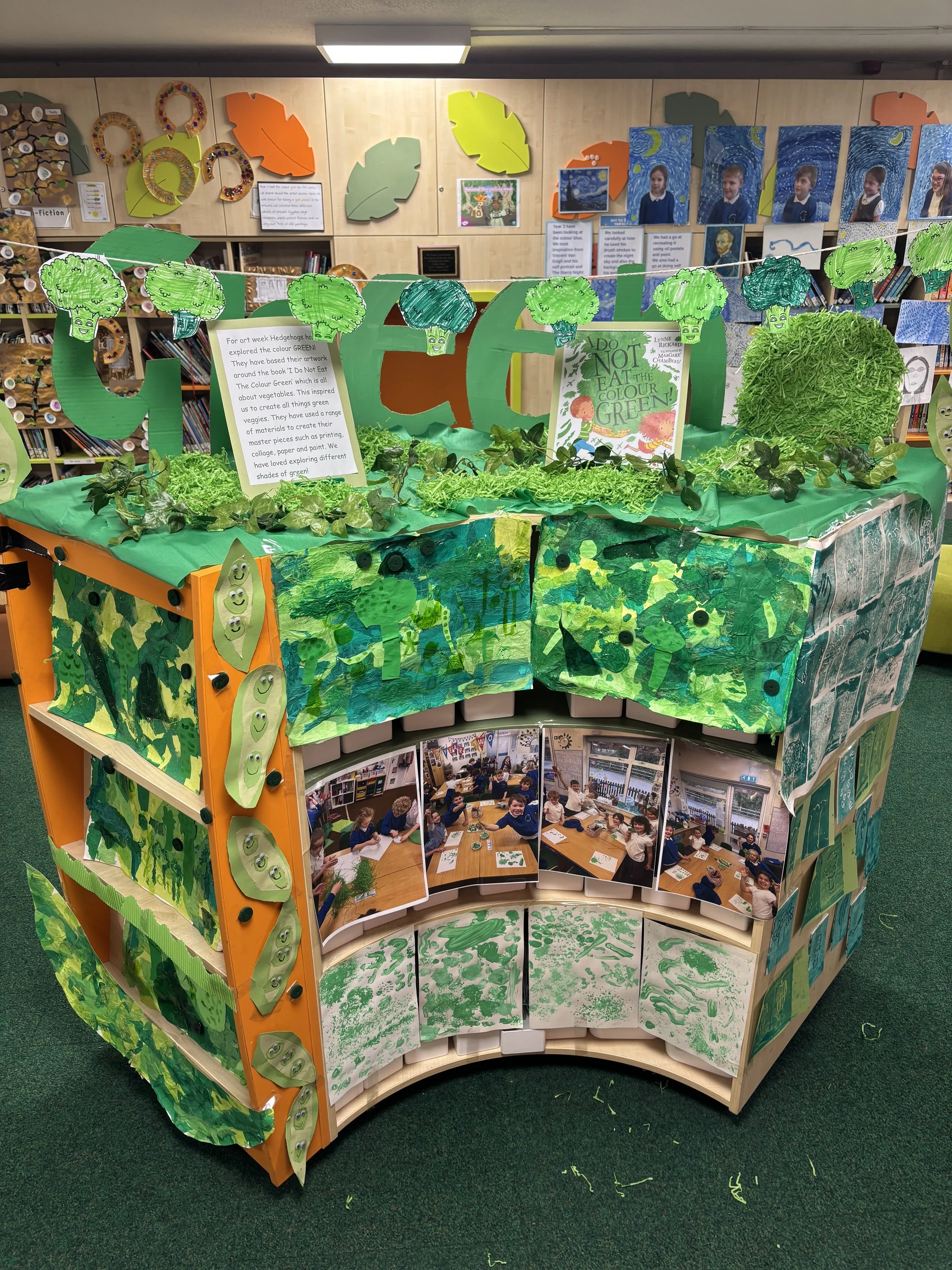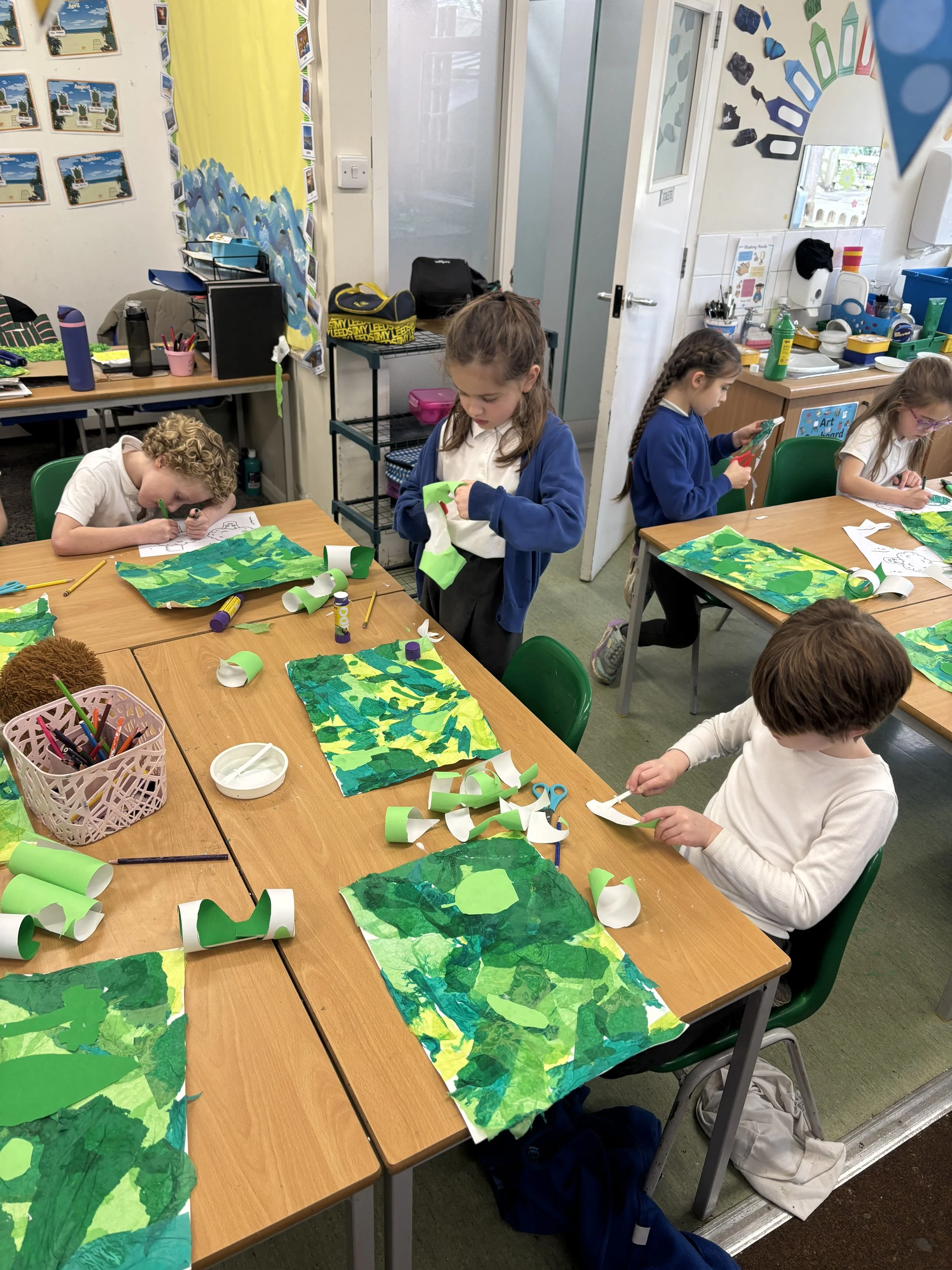 WOW, what a super Art Week (well two weeks)! Hedgehogs have now wrapped up their art and our celebration of all things green has come to an end, and what a fantastic finish Year Two have had. The children have worked incredibly hard in this final week of half term, showing creativity, focus and enthusiasm in every activity. This week, Hedgehogs explored collage, carefully selecting and layering different tissue papers to create textured green artwork. They then experimented with ink by adding green vegetables to their collages, discovering how ink moves and changes to create bold and exciting effects. As you can imagine… Everything was very green! During the week, Year Two also designed some adorable peas in pod characters, which brought lots of smiles and personality into our green display. Hedgehogs should be super proud of the effort they put into their learning during Art Week and should be super proud of their artwork during a busy final week. We hope all our grown-ups enjoyed visiting our Art Week gallery and celebrating the wonderful work Year Two have created. Well done, Hedgehogs – a brilliant end to the term!