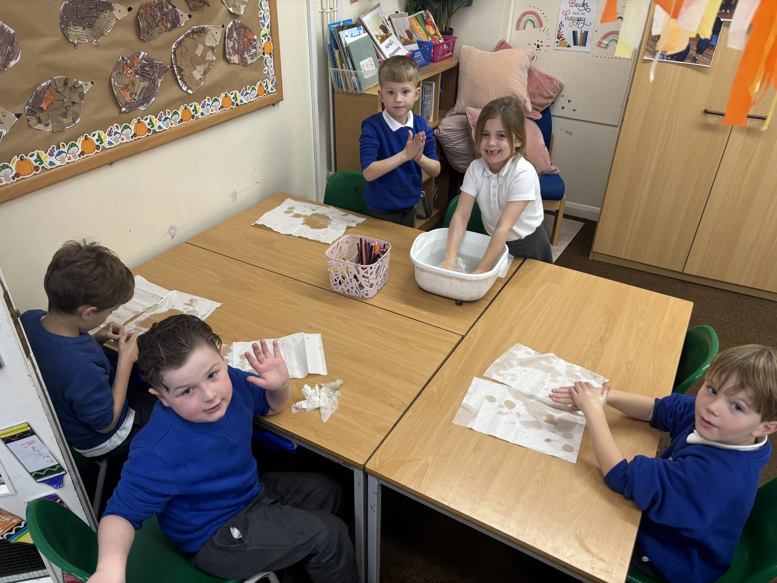 Hedgehogs had a super exciting and fun science lesson to finish our topic ‘Human Survival’. Year Two has explored how to keep their bodies healthy not only through fitness but hygiene too. We learnt that we need to drink lots of water, wash our teeth twice a day, wash our clothes, go to the toilet, wash our bodies etc. There is a lot for us to check and do. It sure did spark some conversation! One thing we did learn about through these lessons were GERMS! Hedgehogs were fascinated by good and bad germs so we completed a science experiment round that idea. It was the ‘Washing Hands’ experiment. Year Two had fake germs put on their hands (oil) and they then had to test which was the best way to kill them. We tried just cold water, cold water with soap and then warm water with soap. It was so much fun and the Hedgehogs loved being scientists. By the end of the afternoon, Year Two made a conclusion that warm water with soap was best to wash/kill all the germs and we certainly now know why we need to wash our hands properly. Well done Hedgehogs!