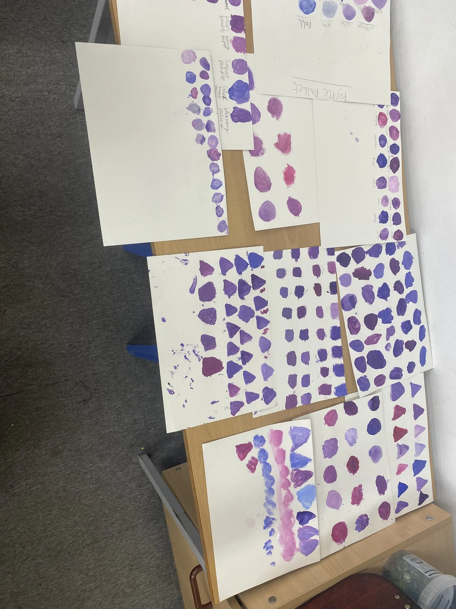 We also tried creating a pallet of purple, mixing paints to make as many different shades of purple as possible. It was fun thinking of different names for each shade.